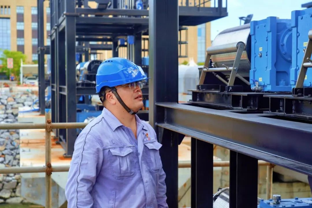黝黑的臉頰邊各有一條白色的安全帽帶留下的印痕,那是陳朝源天天高溫下泡在現(xiàn)場(chǎng)的見(jiàn)證,是烈日贈(zèng)予工程人最高級(jí)別的禮物。