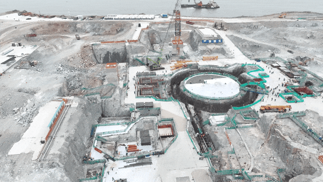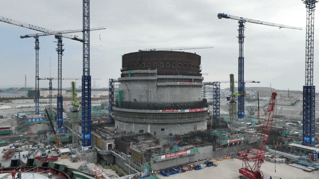陸豐5號機組穹頂?shù)跹b完成,6號機組處在土建和安裝并行推進階段。